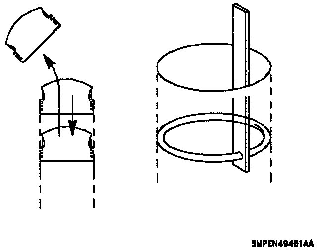 b. Using a piston, push the piston ring a little beyond the bottom of the ring travel (100 mm [3.94 inch]) from the top surface of the cylinder sleeve or block.