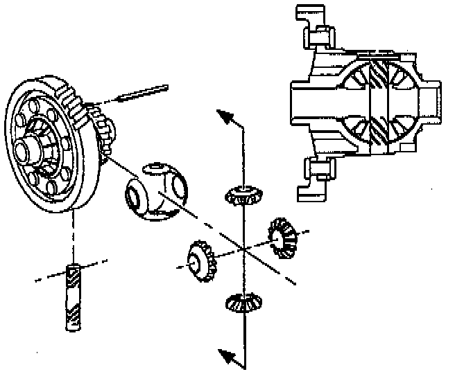 6. Rotate the pinions and thrust liner into the housing together until they line up with the pinion shaft bore in housing. Check that the side gears are in the proper location.