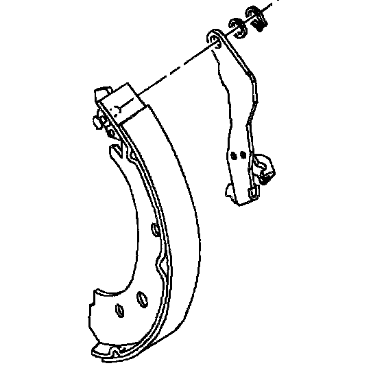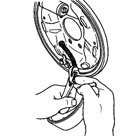 11. Install adjuster spring by placing short end of adjuster spring into hole in leading shoe and stretching other end of spring into hole in adjuster lever.