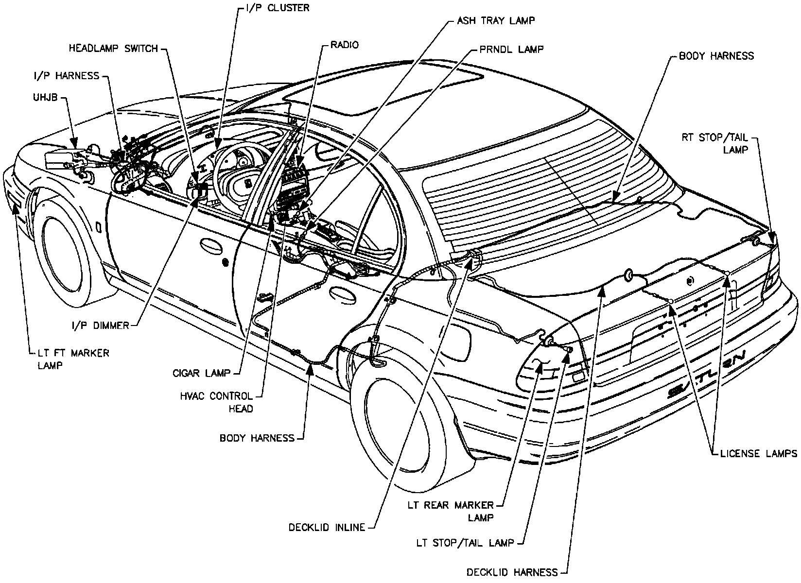 Park/Marker/License Lamps Component Location (Sedan Shown - Wagon Similar):
