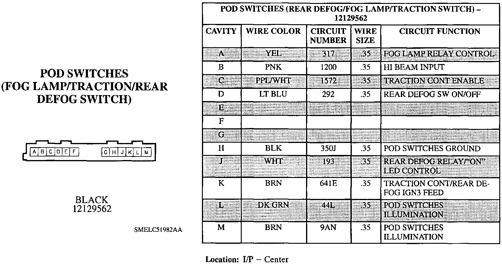 Pod Switches (Fog Lamp/Traction/Rear Defog Switch):