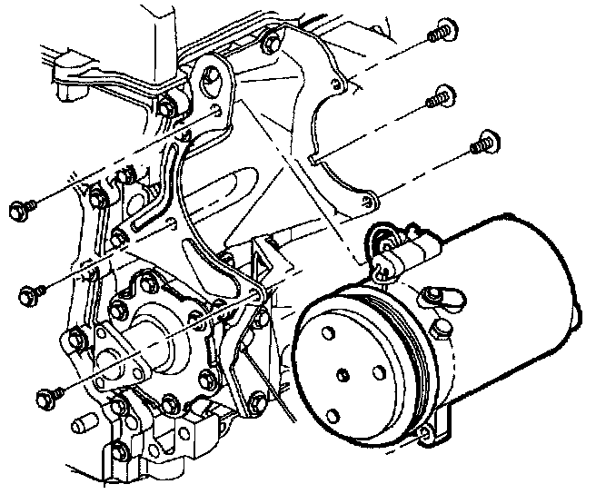 1. Install compressor to front bracket with three bolts. Finger tighten only.