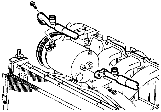 4. Install hoses to the compressor low and high side ports. Tighten bolts to specifications.