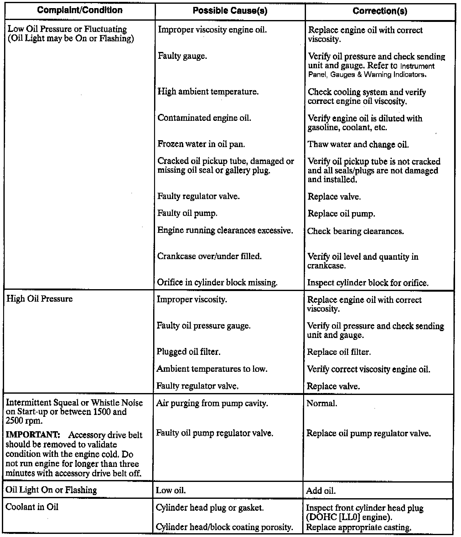 ^ At 2,000 RPM: Standard is 250 kPa (36.0 psi) min. and Service Limit is 200 kPa (29 psi) min.