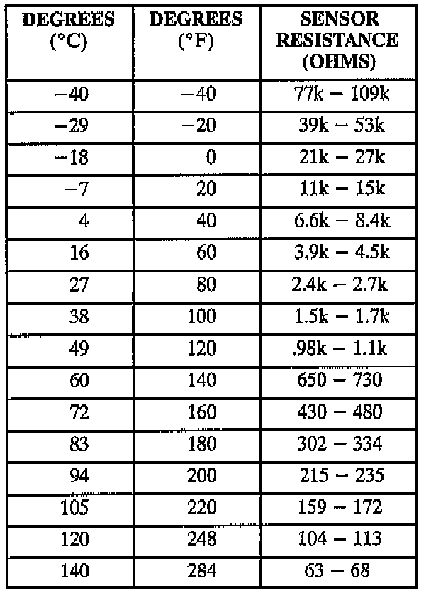 Temperature - Resistance Chart For Sensors: