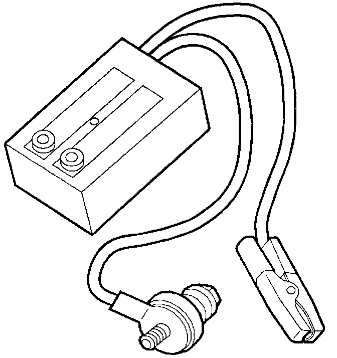 The parasitic load test device (SA 9130Z) is used with a digital multimeter. The test device is used to measure parasitic current drain from the battery with the ignition and all accessories off. The load tester, constructed with one ohm resistance and a built-in circuit protection device, opens when the current exceeds approximately one amp. When the circuit is opened, the user is alerted by a red LED indicator. The parasitic load test device is put into the circuit between the negative battery terminal and the negative battery cable so it effectively becomes a load in series with all other vehicle loads.