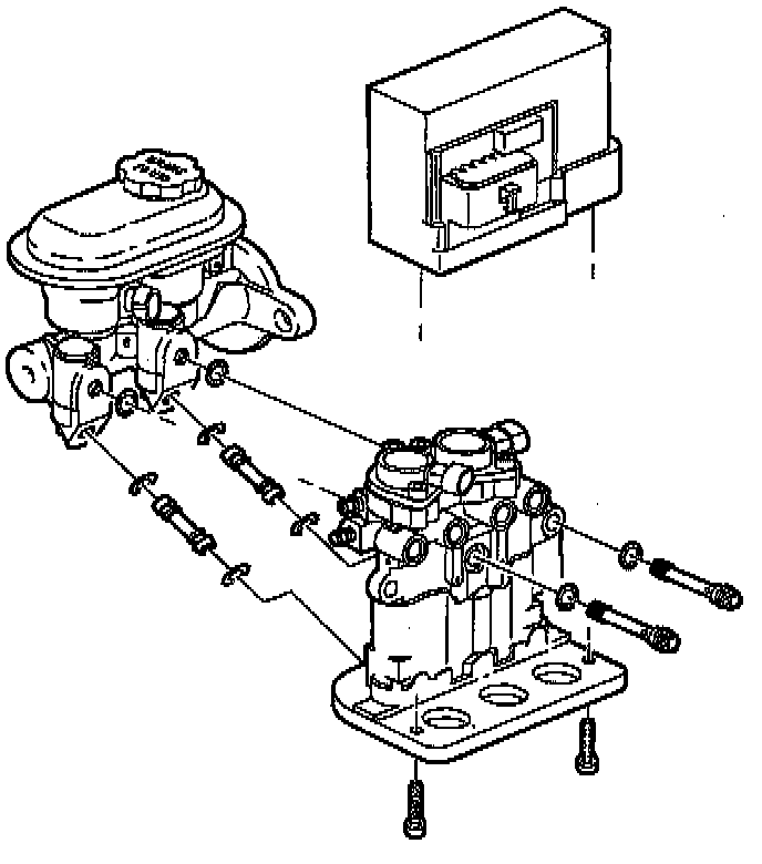 3. Lubricate new through-bolt O-rings with clean brake fluid and install into master cylinder and modulator.