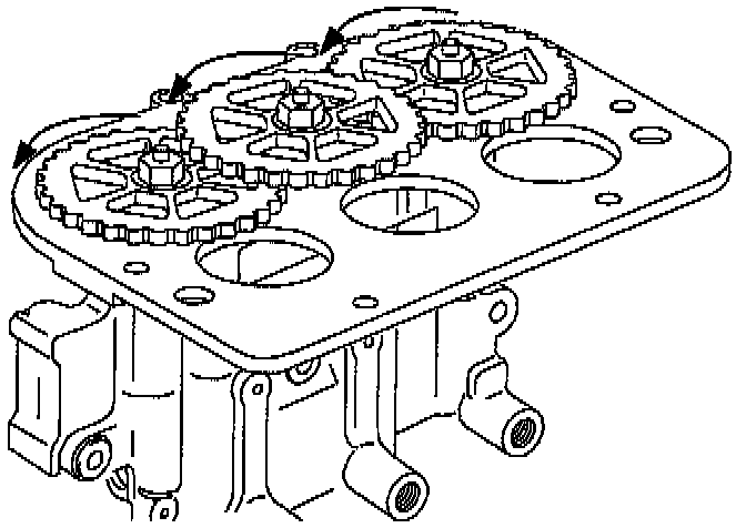 7. With the modulator upside down and the gears facing you, rotate each gear counter-clockwise until movement stops. This procedure will position the pistons very close to the top of modulator bore, simplifying the brake bleeding procedure.