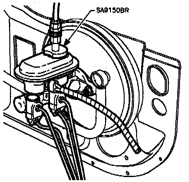 4. Install bleeder adapter (SA9lSOBR or equivalent) to the brake fluid reservoir