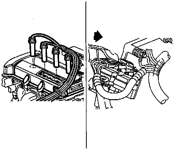 3. Disconnect spark plug wires and remove all four spark plugs.