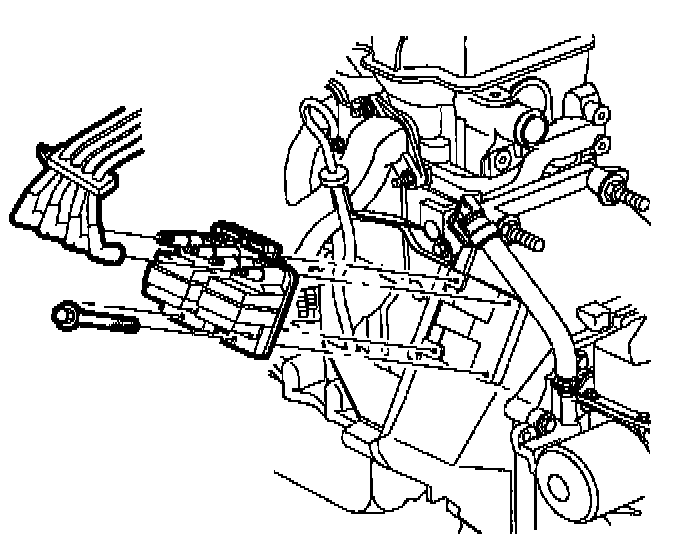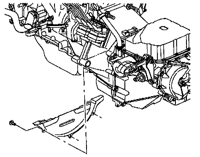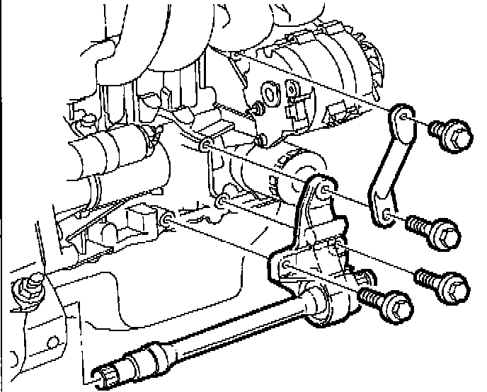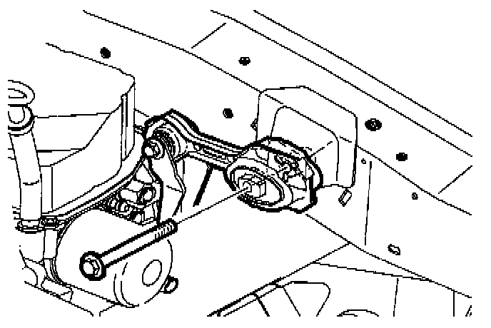 8. Remove transaxle strut-to-midrail bracket fastener.