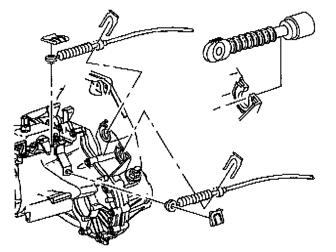 16. Remove shifter cables from shift arms and from clutch housing. Use care not to damage cable boot.