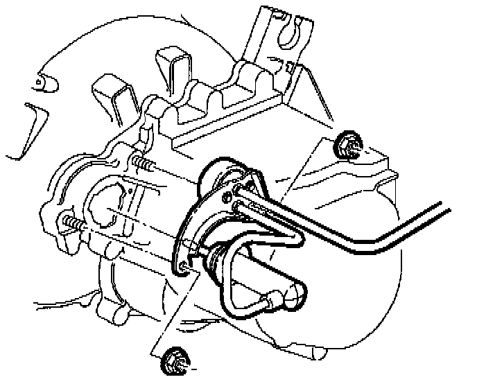 18. Remove two clutch hydraulic dampener to clutch housing fasteners. Wire the actuator cylinder and the dampener to the upper radiator hose.