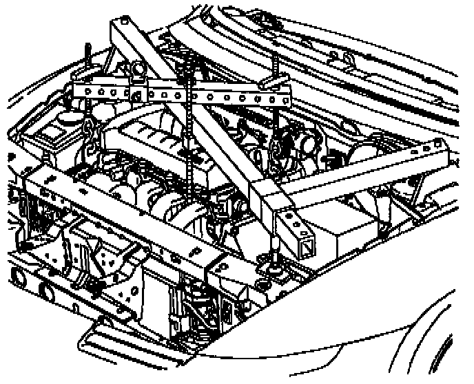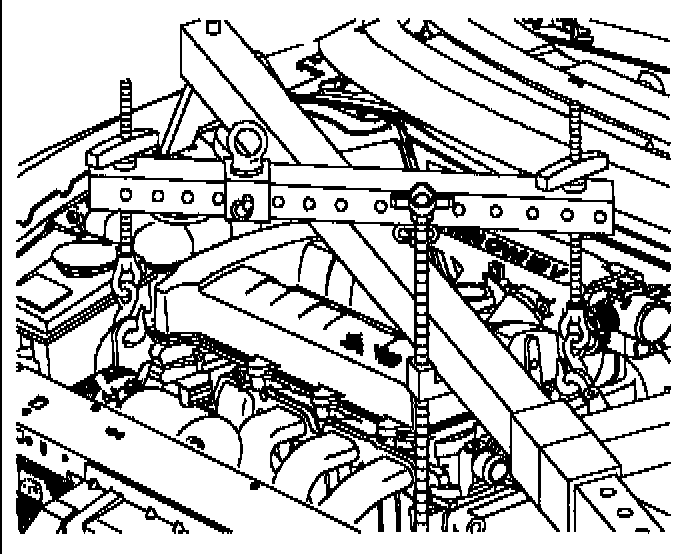 a. Place engine support bar in vehicle as shown. Place the support bar feet on the outer edge of the shock tower.