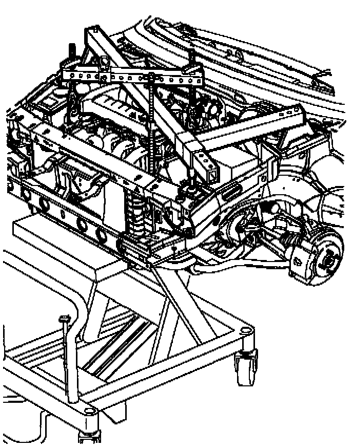 47. Use the powertrain support dolly and two 4 inch x 4 inch x 36 inch pieces of lumber to support the cradle on the dolly.