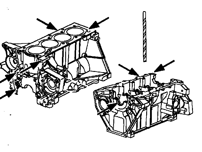 c. If cylinder block oil gallery plugs are removed, clean the threads and apply Saturn P/N 21485276 (Loctite(R) 290 or equivalent). Do not over-torque the plugs.
