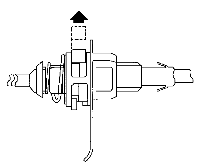 8. When correct gap is obtained, depress lock tab on adjustable park lock cable assembly.