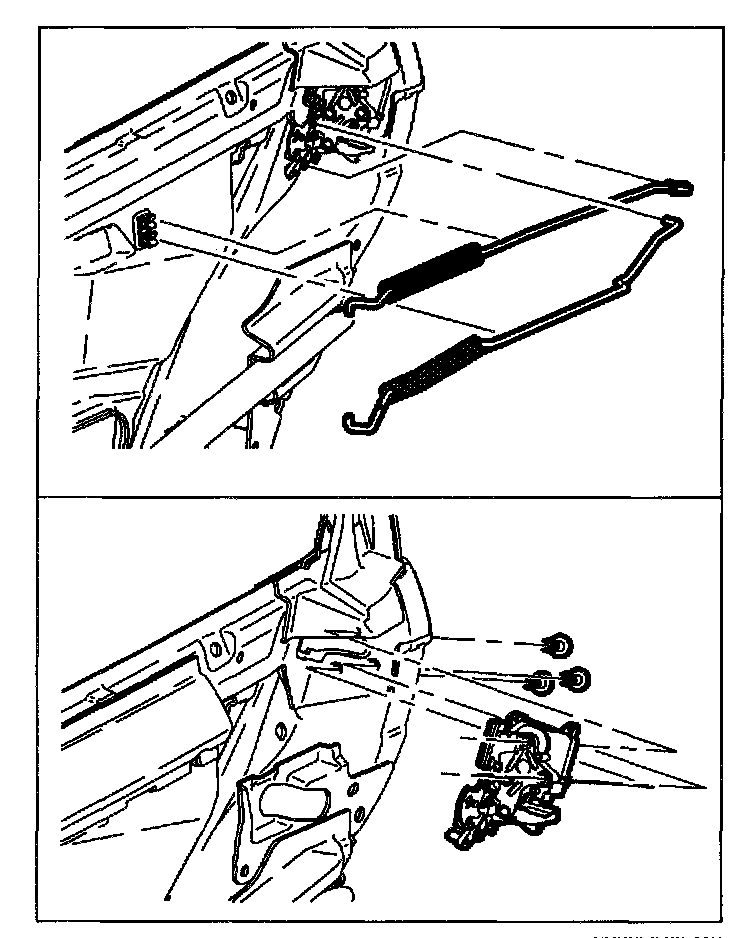 NOTE: The rod retaining clips used in the door lock levers and door lock cylinder pawls are not reusable. Retention characteristics are minimized once a rod is extracted. Clips must be replaced every time a rod is extracted.