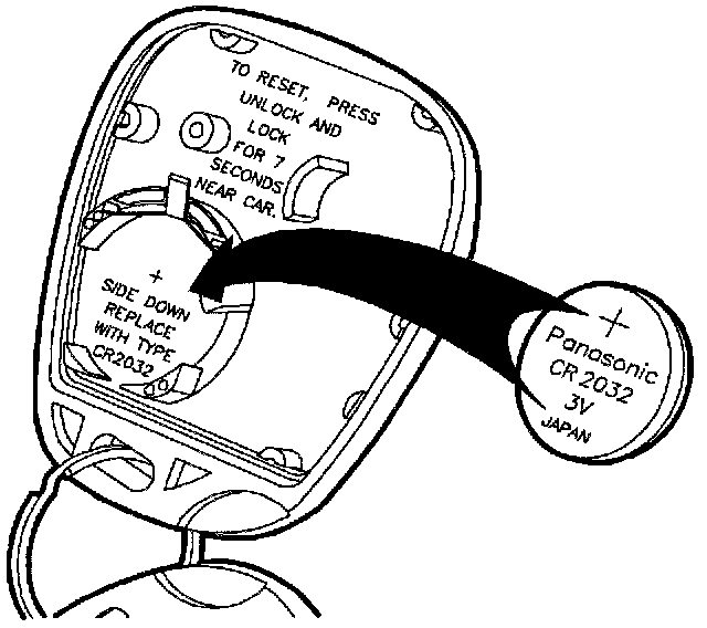 NOTE: If the transmitter(s) won't work, perform the "RKE SYSTEM CHECK" before replacing the battery. Also, before replacing the battery in the transmitter(s), make sure that the battery is touching both the negative and positive contacts inside the transmitter(s).