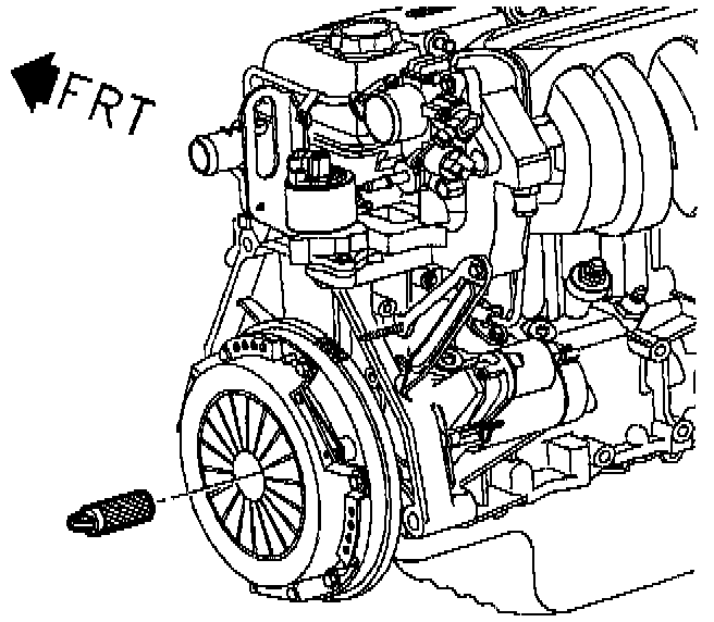 1. Install clutch disc and pressure plate, if applicable. The yellow dot on the pressure plate should be aligned near the mark on the flywheel. Use service tool SA9145T to align the clutch disk for the manual transaxle input shaft alignment. When installing an automatic transaxle, the yellow dot on the torque converter must be at the 6 o'clock position when the first flexplate to torque converter bolt is tightened.