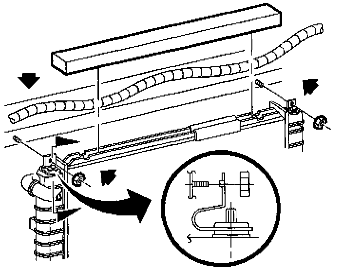 13. Attach heater, lower radiator, and coolant fill hoses and remove radiator safety wire/tie straps.