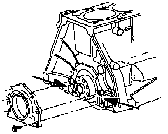 Remove the four bolts and rear oil seal carrier. Pry tangs are located on both sides of the rear seal carrier. A rolling head pry bar or pin. bar will separate the carrier from the cylinder block, use care not to damage the sealing surface.