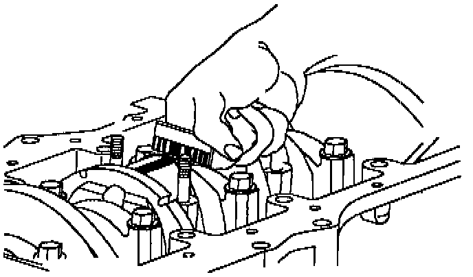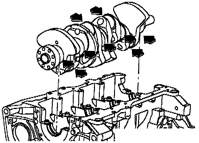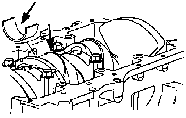 7. Uniformly loosen and remove the main bearing cap bolts.