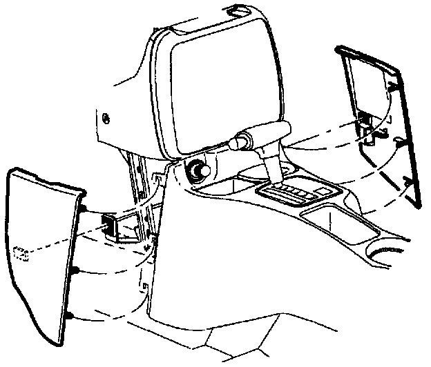 13. Remove left and right lower trim panel extensions by pulling outward at dual lock locations. Then rotate panels outward to disengage hinges from console.