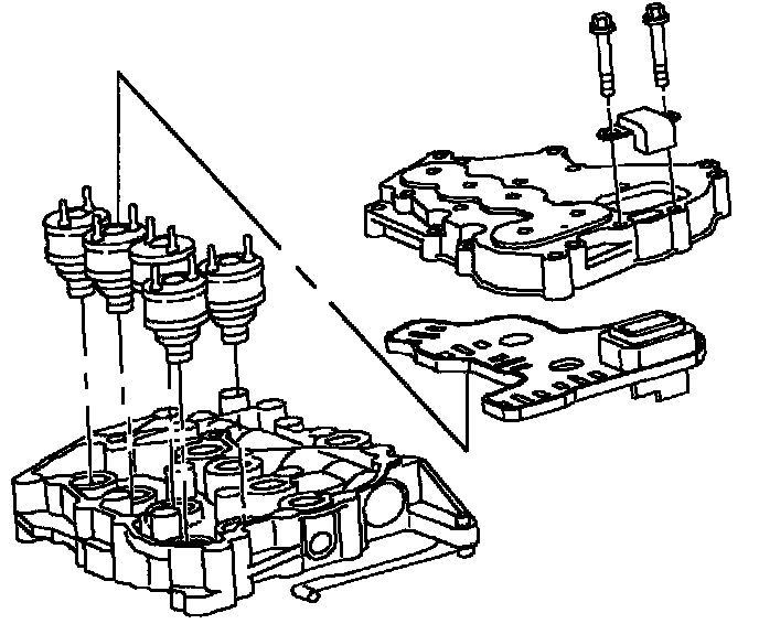 CAUTION: Take care when removing the line pressure regulator valve. The pressure regulator cushion spring and valve spring have a tendency to shoot-out, resulting in potential injury.IMPORTANT: The valve body should only be disassembled if directed by the diagnostic charts or if the transaxle is being overhauled. Care must be taken when removing valve body valves as these valves are not serviced separately. Whenever the valve body is disassembled, new spacer plate gaskets must be installed.