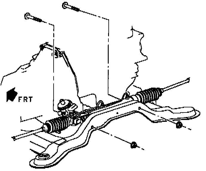 49. Install steering gear-to-cradle attachment fasteners. (Power steering gear shown, manual similar.)