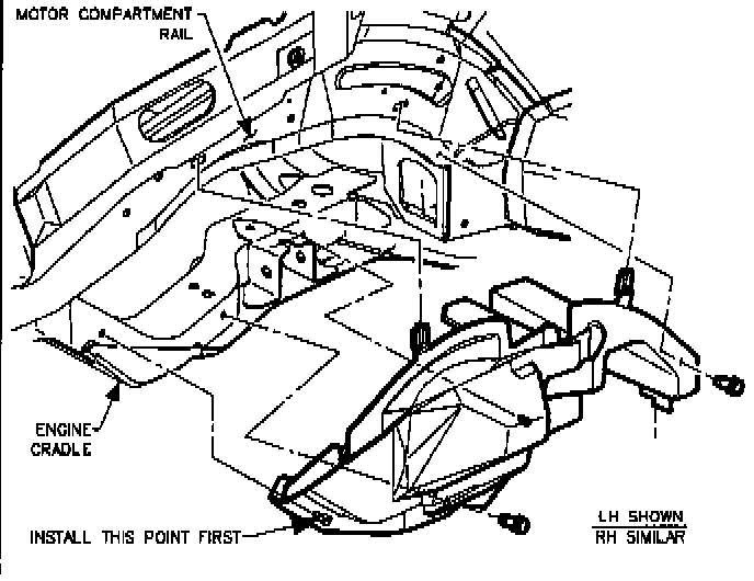 59. On Coupes, install right and left lower fascia brace to cradle J-nuts.