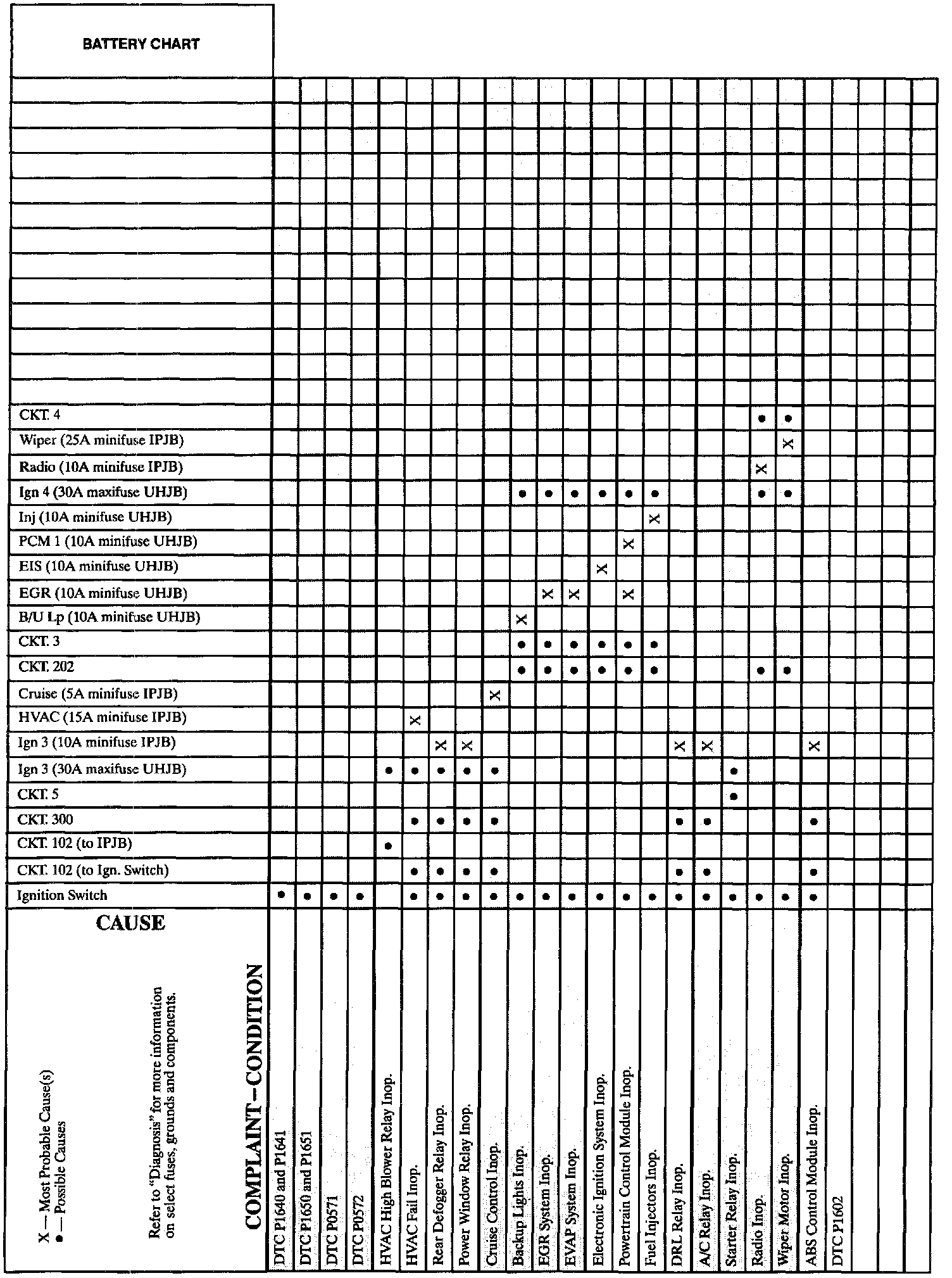 Battery Complaint-Condition Chart: