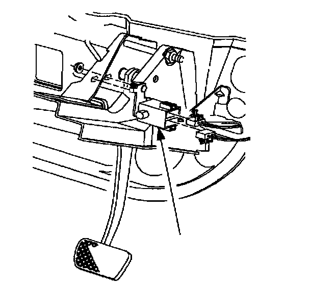 Disconnect electrical connector to brake switch. (Arrow denotes brake switch.)