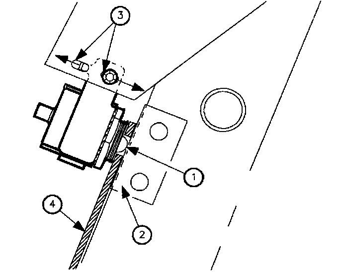 c. The adjustment slots (3) are located above the switch and the adjustment gage (4) is inserted between the switch and switch actuator pad.