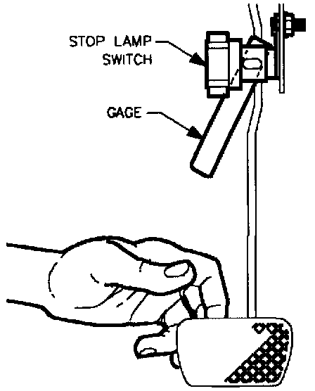 2. Install stop lamp switch adjustment gage (SA 9303BR) between the switch and the switch actuator pad on the brake pedal arm being sure that the plunger protrudes through the slot in the gage.