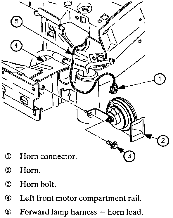 2. Remove headlamp attachment bolts, one upper and one lower, connecting to the headlamp mounting bracket.