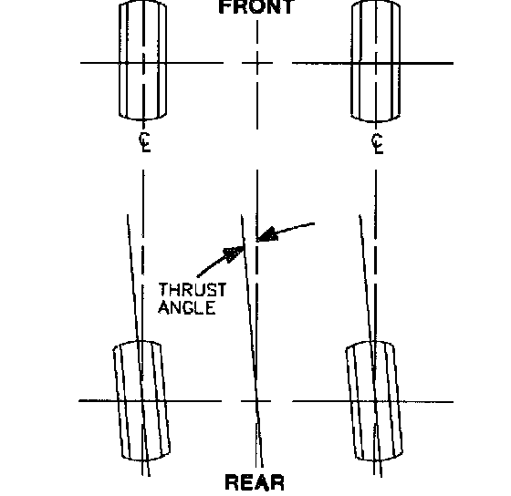 Thrust angle is the angle between the geometric centerline of the vehicle and the direction that the rear