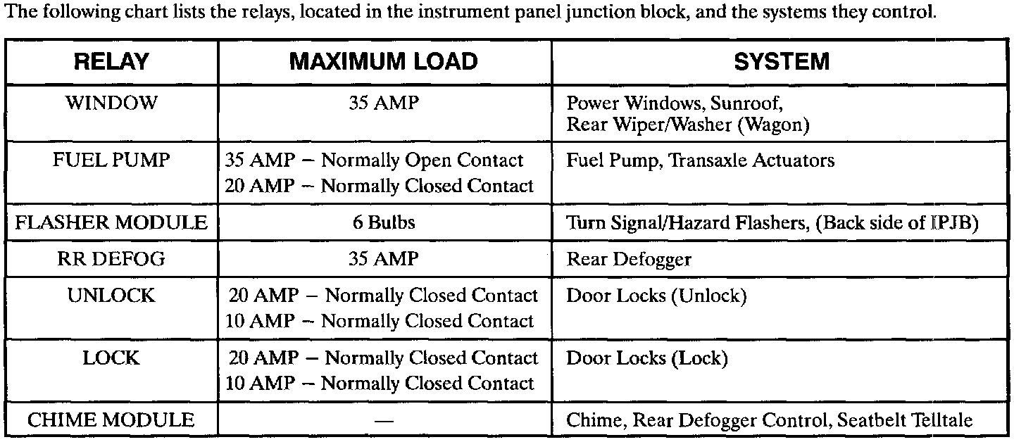 Instrument Panel Junction Block (IPJB): Relay/Module Circuit Feeds:
