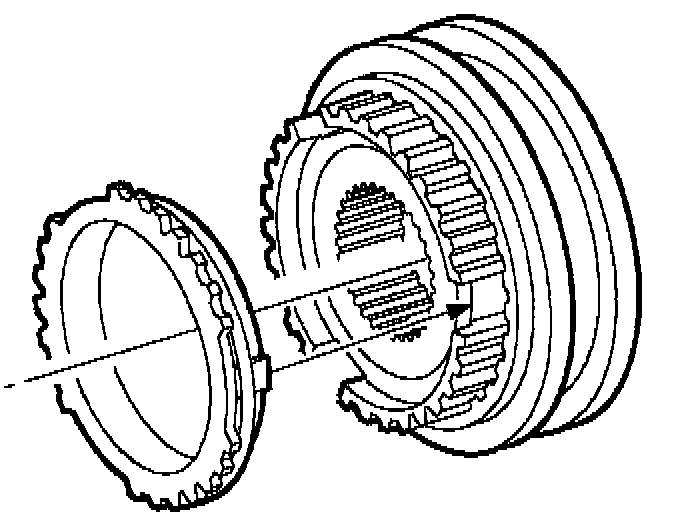 IMPORTANT: Be sure tabs on blocker ring are aligned with slots on hub. (3rd/4th synchronizer shown, 5th/Reverse synchronizer similar.) If the 5th/Reverse hub is press fit on the input shaft: