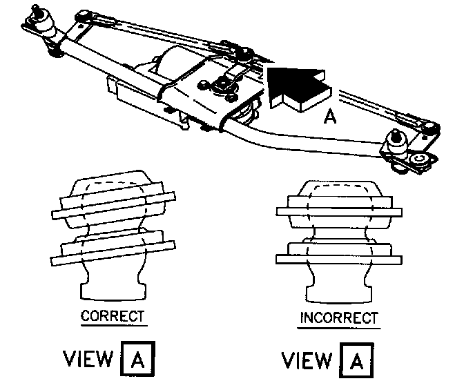 2. Press the transmission links onto the wiper motor crank arm firmly by hand. Assure that the position of the transmission links are not bottomed on the crank arm ball.