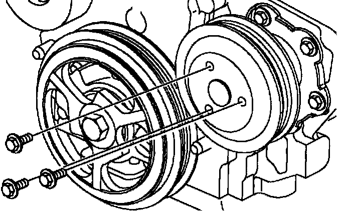 Notice: Spray the water pump hub with a penetrating oil to loosen any rust that may prevent the pulley from being easily removed. If the pulley is pried off the hub and bent, it must be replaced to prevent accessory drive belt failures.