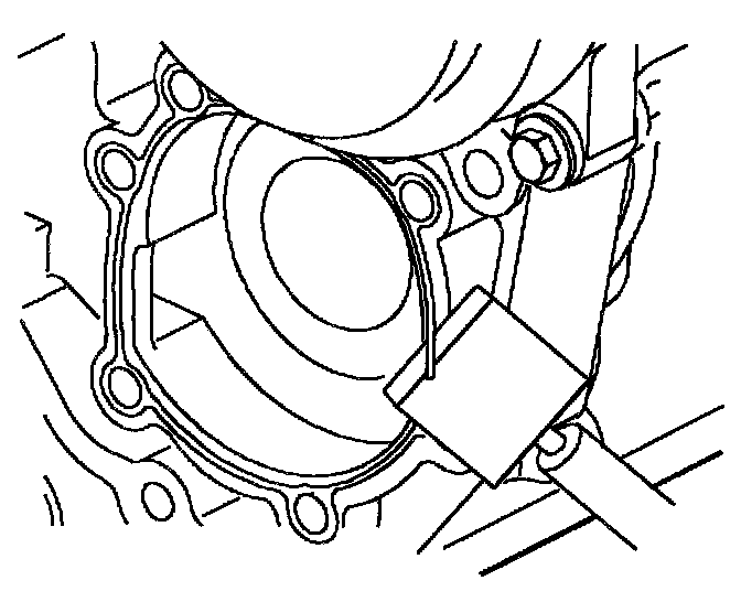 Notice: If it is difficult to remove the water pump, tap it with a gasket scraper under the flange. Use extreme care and do not damage or scratch the machined aluminum cylinder block, surface leaks will result.