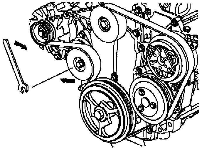 Important: A 25.4 mm (1 in.) block of wood or hammer handle can be used as a wedge between the crankshaft and water pump pulleys to hold the water pump pulley from turning when loosening the pulley bolts.