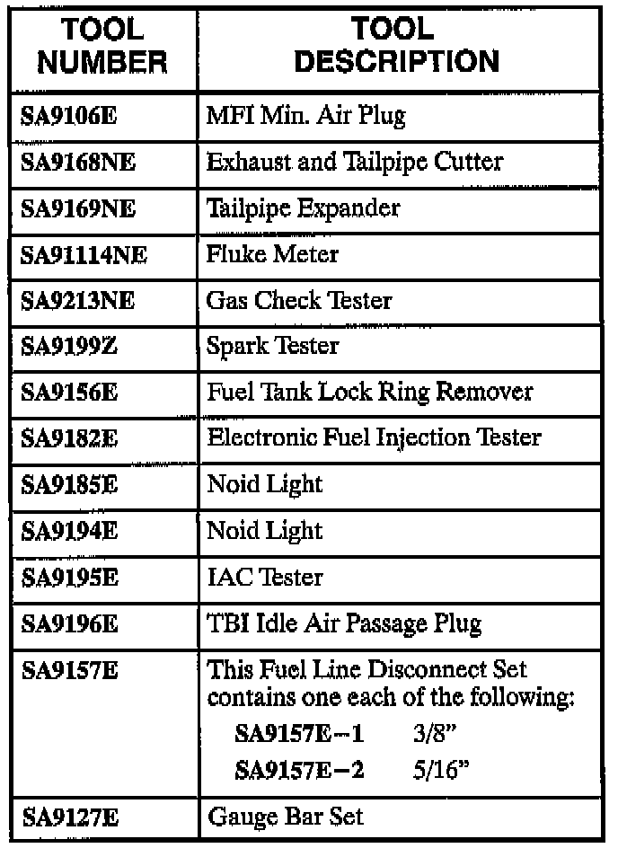List of Special Tools