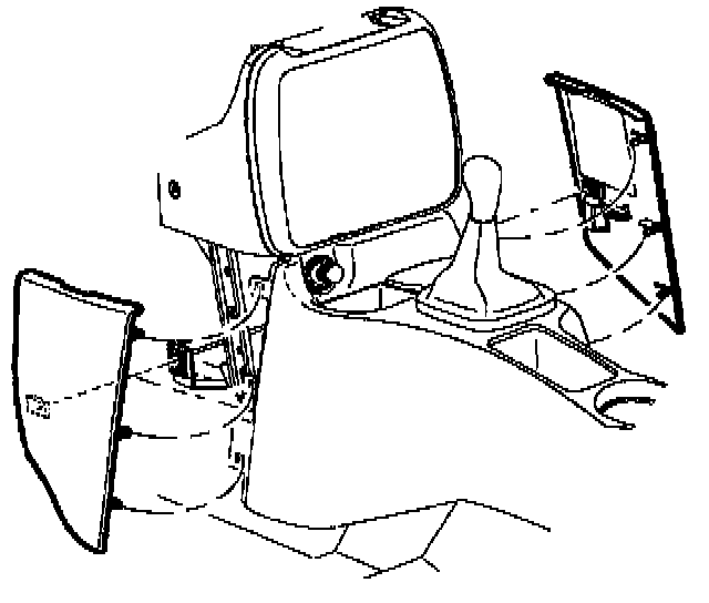 9. Remove left and right lower trim panel extensions by pulling outward at dual lock locations. Then rotate panels outward to disengage hinges from console.