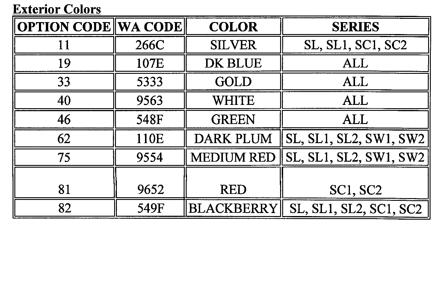 Exterior Colors Usage