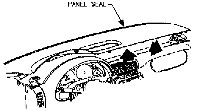 ^ Be sure I/P upper trim panel seal is correctly seated on forward edge before installing upper trim panel (SL/SW only).