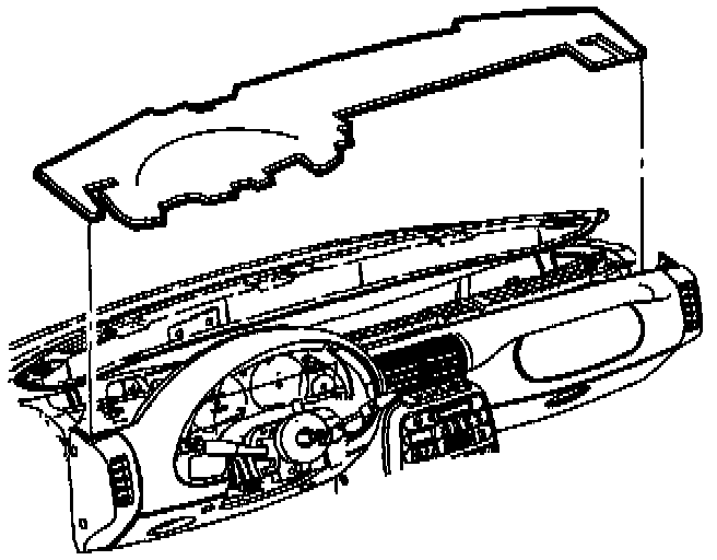 3. Lift I/P upper trim panel at clip locations on rear edge to disengage clips.