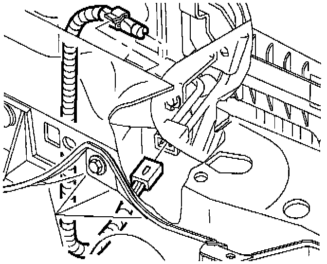 3. Route female end of power cord downward. between air cleaner resonator and upper radiator hose, directly behind engine cooling fan shroud.