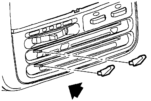 1. Remove A/C-Recirc switch package by lifting at outer edge with a small screwdriver.